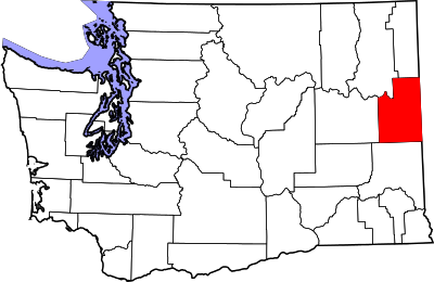 According to the U.S. Census Bureau, the county has a total area of 1,781 square miles (4,610 km2), of which 1,764 square miles (4,570 km2) is land and 17 square miles (44 km2) (0.9%) is water.[6] The lowest point in the county is the Spokane River behind Long Lake Dam (boundary of Stevens County) at 1538 feet (468 m) above sea level. (There is virtually no change in elevation between the dam and the mouth of the Little Spokane River inside Riverside State Park.) The highest point in the county is the summit of Mount Spokane at 5883 feet (1793 m).